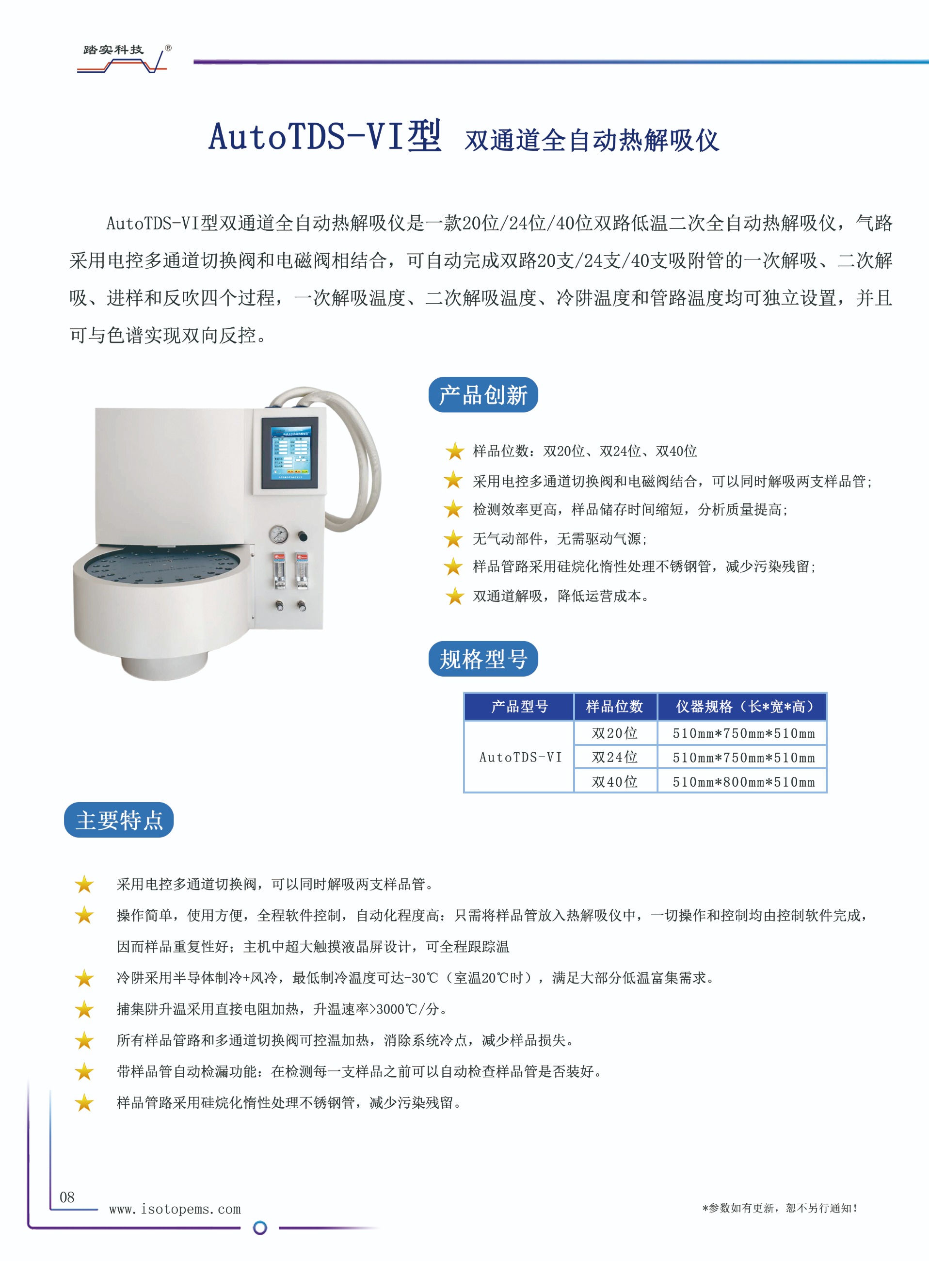 雙20位低溫二次全自動熱脫附儀技術(shù)參數(shù):